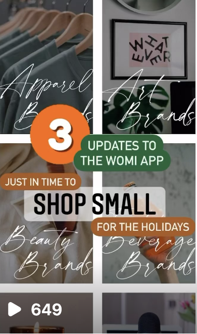 At its core, WoMi was created to alleviate the barriers of shopping small from consumers’ excuses. Digital strategies included monthly Swap With WoMi challenges, gift guides, founder freebies, and even going live every weekend for a year to prove Every Saturday Is Small Business Saturday.